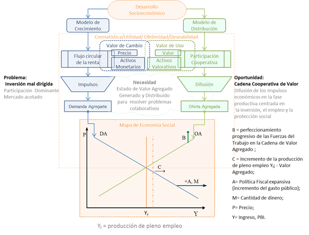 Ilustración 1 Problemas y oportunidades para el Desarrollo Económico. Marcelo Claudio Perissé (2011) Los términos: Crematística / Utilidad / Ofelimidad / Deseabilidad, indicados en el modelo, pretenden expresar la cualidad de creación de valor como utilidad genuina de un producto social que se desea para un propósito adecuado (Fisher, 1918) |