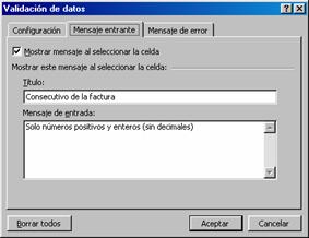 El efecto de esto es que al ubicarse en la celda para digitar la información aparece algo como lo que se indica en la siguiente figura Figura 40 Efectos de la Venta de entrada de datos |