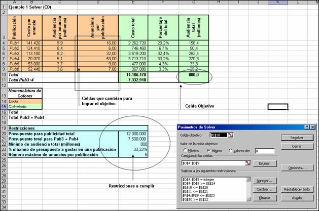 La definición de la celda objetivo y de las celdas cambiantes se hace simplemente indicando con el Mouse las celdas respectivas
