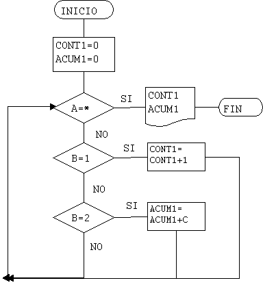 Operación de suma y decisión con el archivo cuyo contenido se muestra en este ejercicio, se desea obtener e imprimir la cantidad de líneas de productos de color blanco y la cantidad de unidades de los productos de color rojo.