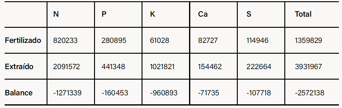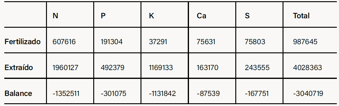 Total Exportado: ~421,5 kg de nutrientes por hectárea.